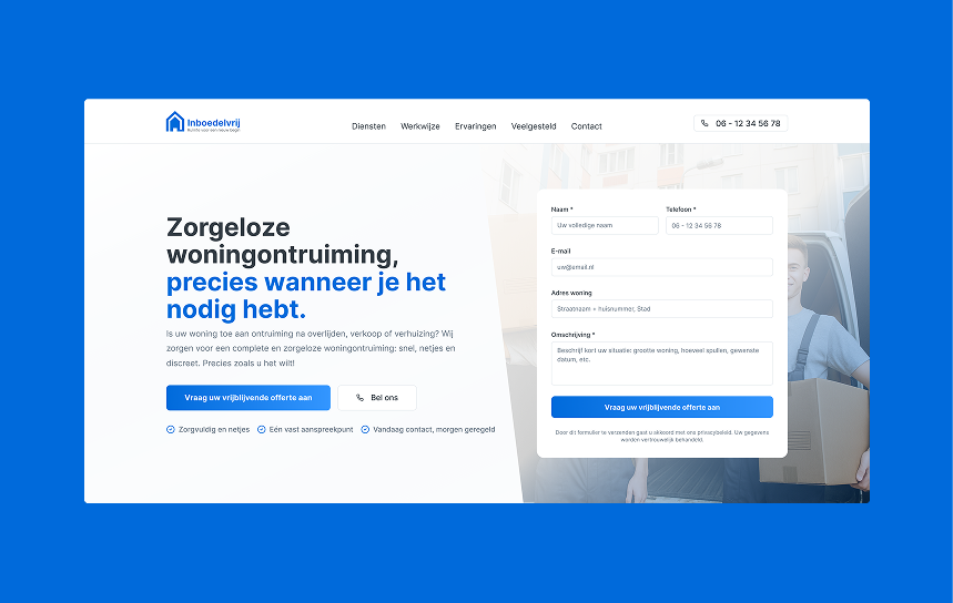 Binnen 2 weken staat je website online, mits we alle informatie op tijd ontvangen. We beperken ons tot 10 nieuwe klanten per maand, zodat we jou de snelheid én aandacht kunnen geven die je verdient.